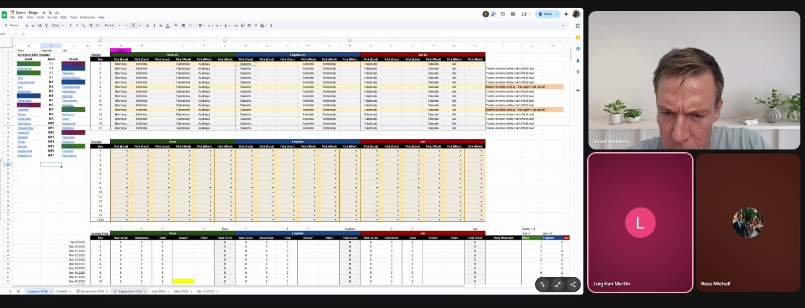Since this was our first official Sumo Stables match, we were essentially building the plane while flying it, making several rule changes on the fly. However, the experiment was a massive success. The combination of Python-driven data, a custom Google Sheets engine, and the raw energy of the Fukuoka tournament transformed us from casual observers into obsessed Oyakata (even the tour guide didn’t have the knowledge we had!). We’ll be back for the next tournament—sharper, data-richer, and ready for the draft.